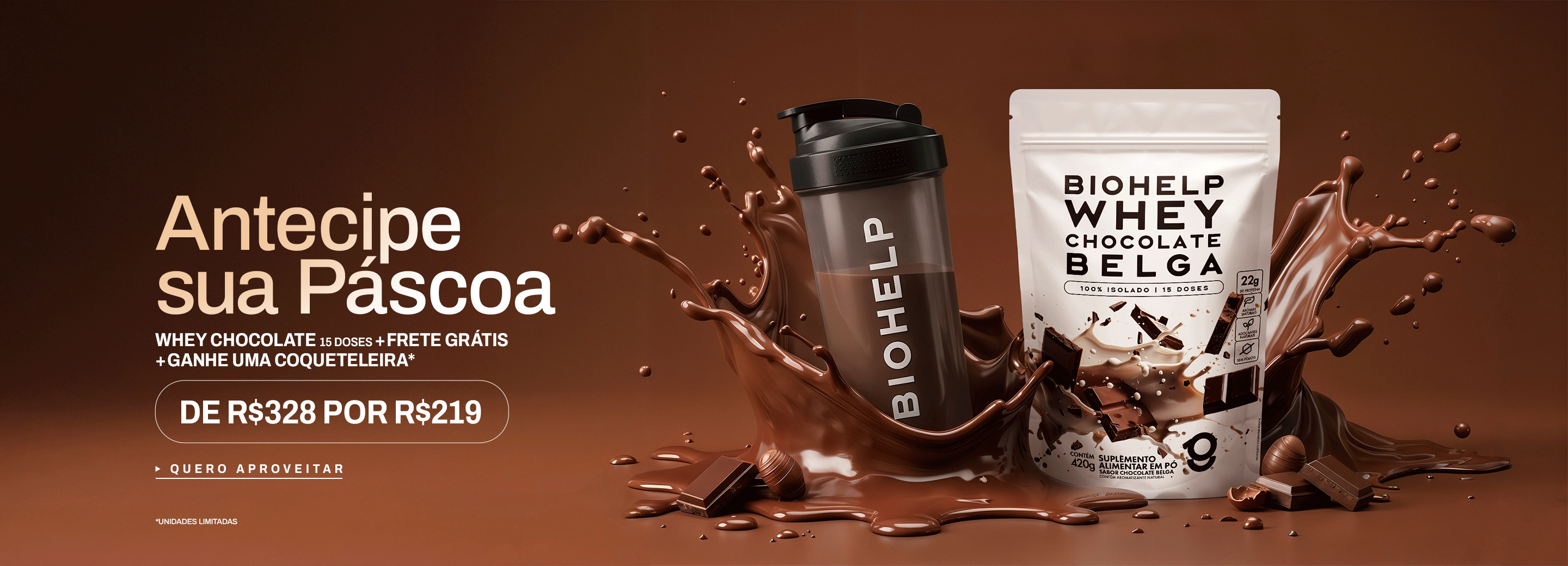 Economize R$ 109Whey Isolado Chocolate Belga (15 doses) + Coqueteleira + Frete Grátis